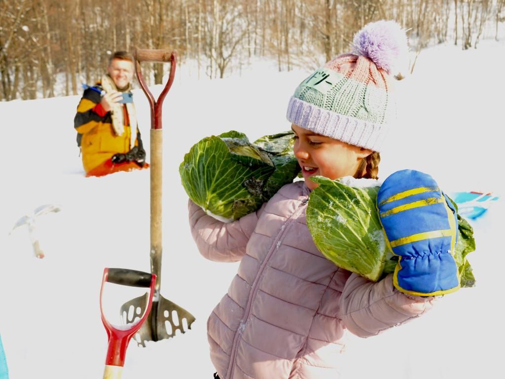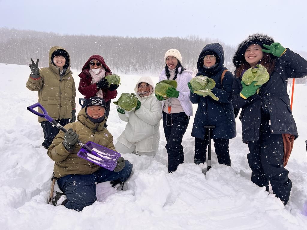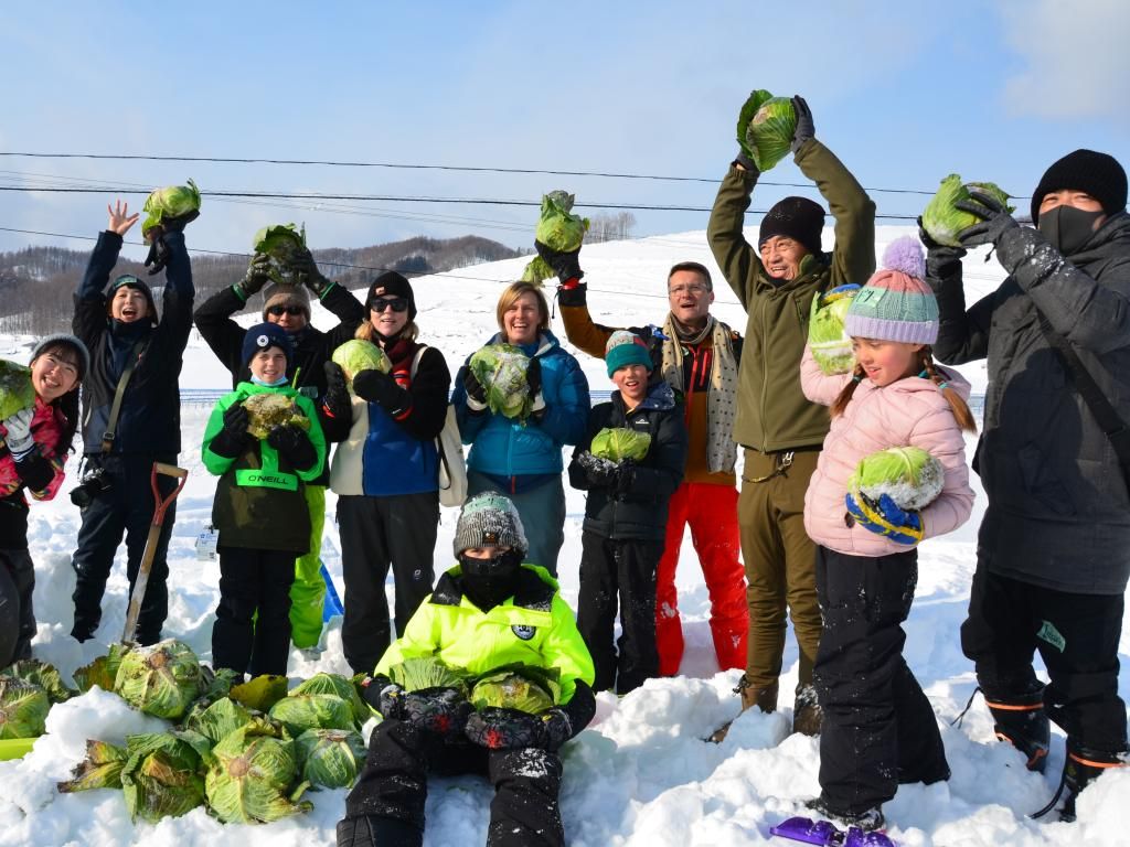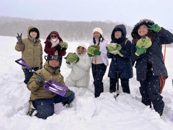 マイナス20度の厳しい寒さの中、雪に守られて甘みを増したキャベツの 収穫体験!